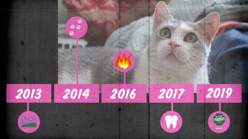 2019: White Coat Waste Project shut down USDA’s Kitten Slaughterhouse. Delilah is finally retired!