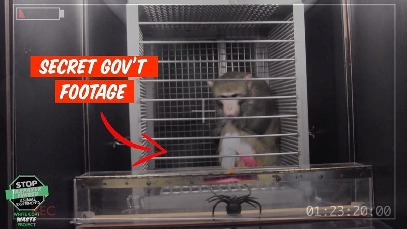 Never-before-seen videos released to WCW depict distraught monkeys chained by the neck in tiny cages being tormented with rubber spiders and mechanical snakes, objects the primates instinctively fear, just to observe their reactions.