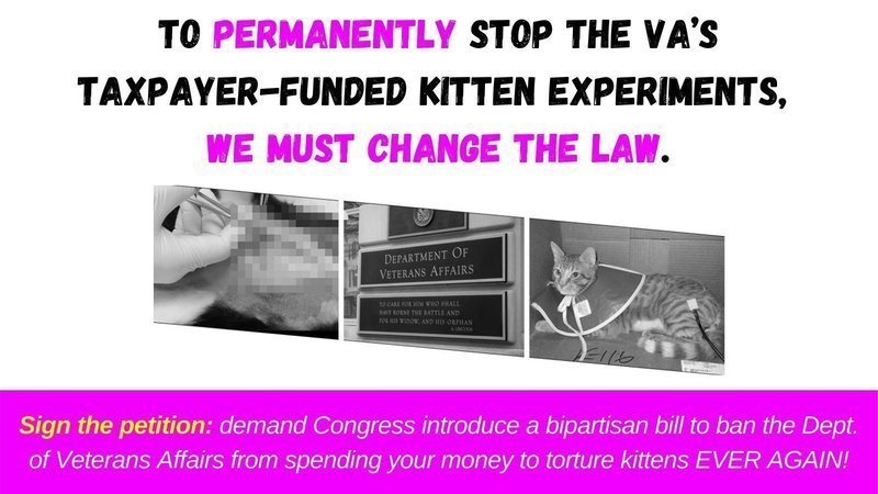 Please add your name to our petition right now, demanding Congress introduce a bipartisan bill to ban the VA from spending your money to experiment on kittens EVER AGAIN!