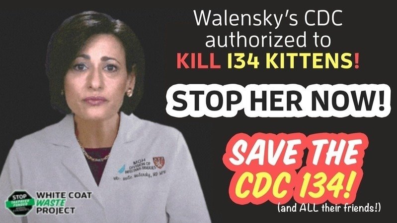 It’s an emergency because if we don’t take immediate action, CDC Director Rochelle Walensky may kill 134 kittens in the new year after they’re abused in government experiments.