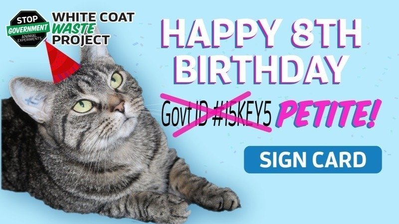 This week, my cat Petite – formerly govt ID #15KEY5 – turns 8 years old. Will you help us celebrate by signing her official birthday card?