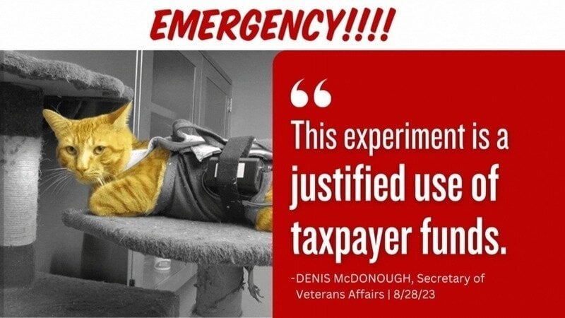 - DOUBLING DOWN: In a new letter he sent to Congress just two days ago, McDonough refuses to cancel the experiment. He calls cat abuse a “justified use of taxpayer funds”!