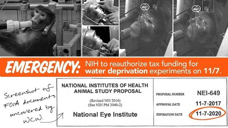 In just a few days, our government is about to approve funding for a new round of primate WATER DEPRIVATION and brain damage experiments at the National Institutes of Health (NIH).