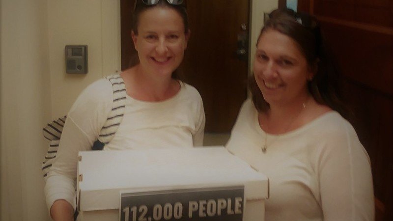 My husband Josh, best friend Allison, and I delivered signatures from 115k of you to Senator Collins' Portland office this afternoon. According to Collins' staffer Kate Simson, the phone calls and emails from petition supporters have been pouring in all day. So to all of you who signed, emailed, and called - THANK YOU!!