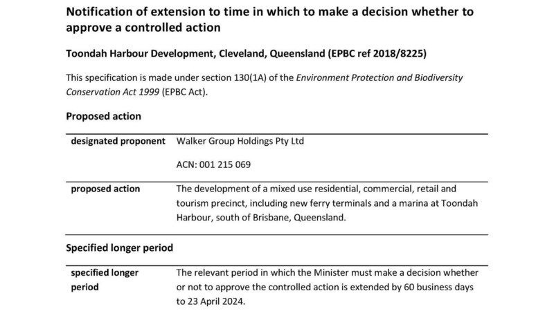 With 86% of unique submissions out of 26,225 submissions opposing this 3,600-unit mega development, the timeframe for a decision by the Federal Environment Minister has been extended by 60 business days to 23 April.