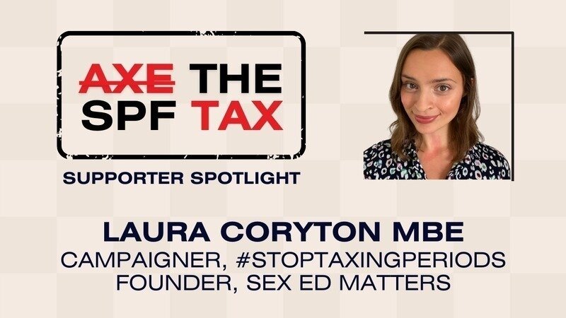 In the meantime, I wanted to highlight our campaign's first public backer, feminist activist, Laura Coryton MBE. Laura spearheaded the 'Stop Taxing Periods. Period.' campaign, which was instrumental in ending the 20% luxury 'tampon tax'. In 2021, after years of tireless campaigning, the government listened and scrapped VAT on sanitary products. Laura's campaign was hugely motivating for me and having her support and guidance on this journey means so much.