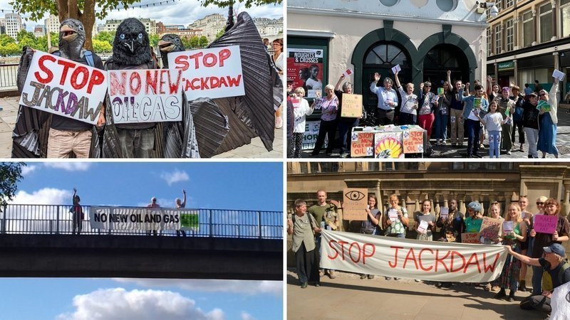 Just in the last few days, we’ve had thousands of people across the UK taking action against new oil and gas both online and in the streets. We’ve had rallies in Sheffield, Liverpool, Leeds, Galashiels and Stourbridge, put up stickers and posters across the country, dropped banners, and held information stalls and flyering events in London, Berko, Houston, Oban, New Milton, Dunoon, Bridlington, Huntington and Edinburgh. And that’s just the beginning! We have dozens more events planned across the country and online until the end of the week. Thousands of us have taken digital action across platforms, and we’ve even had #StopJackdaw trending on twitter.