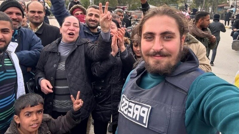 Photo: Journalist Ali Haj Suleiman celebrates in Salamiyah.
