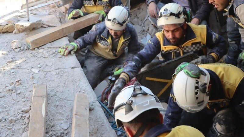 Photo: White Helmets aid civilians in Idlib after regime airstrikes hit Al-Jalaa Street on December 2, 2024.