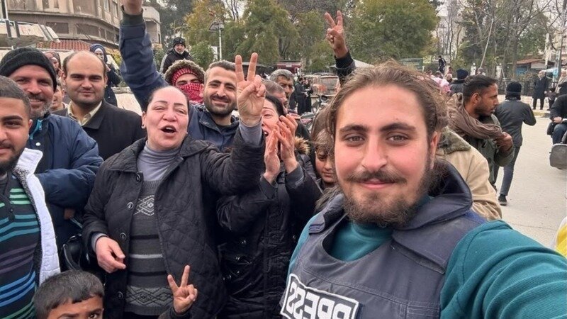 Photo: Journalist Ali Haj Suleiman celebrates in Salamiyah.