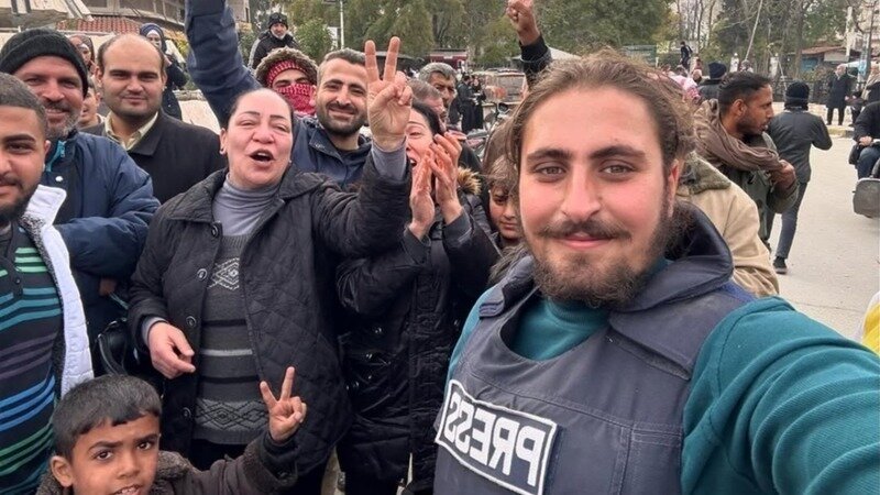 Photo: Journalist Ali Haj Suleiman celebrates in Salamiyah.