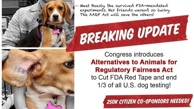 P.S. HISTORIC! They’ve suffered in corporate labs for so long. But we can fix this now. The AARF Act will help 20,000 lab beagles like Beesly who are gassed and poisoned just because of wasteful and totally unnecessary FDA red tape!