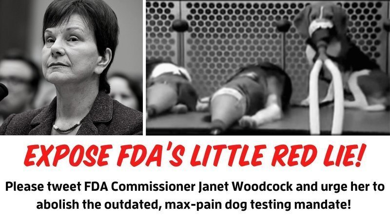 TAKE ACTION: Follow this link to tweet a prewritten message directly to FDA Commissioner Janet Woodcock, demanding she cut red tape and abolish the wasteful puppy testing mandate.