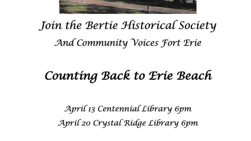 Community Voices of Fort Erie is partnering with the Bertie Historical Society to present Counting Back to Erie Beach (Waverly Woods) on April 20th at 6 p.m. at the Crystal Ridge Library.