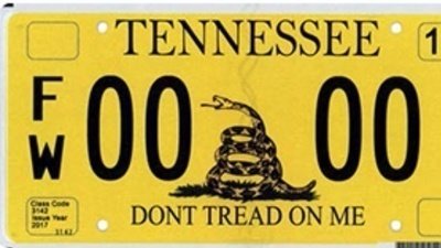 Remove the Tennessee custom license plate, “Don’t Tread On Me”