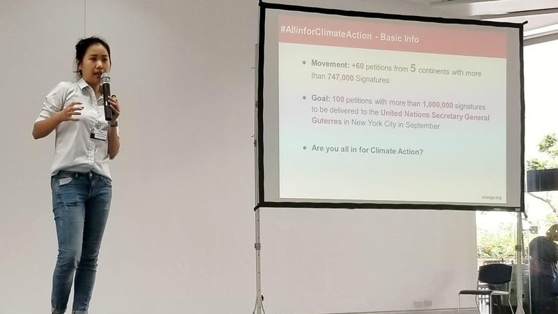 Hello all! It’s Lynn from Climate Strike Thailand. On Friday, 7 September, I went to the United Nations Headquarters in Bangkok to speak for All in For Climate Action. During a session called Action Hub—part of the Asia Pacific Climate Week, in which people from around the world came to discuss and share about climate change and fossil fuels—I spoke introduced our youth movement to the audience.