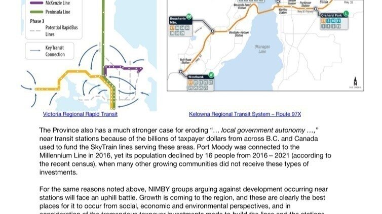 In a March 10 2022, lobbying letter to David Eby, while he was the Attorney General and Minister Responsible for Housing (soon to be Premier by the end of the year), the UDI used BC Transit's maps for proposed RapidBus lines (including the one proposed on McKenzie) in the Capital Region, and also for transit in the Okanagan (there are UDI Chapters in each region), without citing the source of the maps, and placing them under the UDI's own logo.