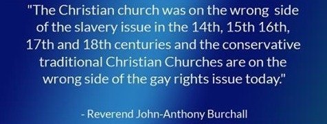 The Christian church was on the wrong side of the slavery issue in the 14th, 15th 16th, 17th and 18th centuries and the conservative traditional Christian Churches are on the wrong side of the gay rights issue today.