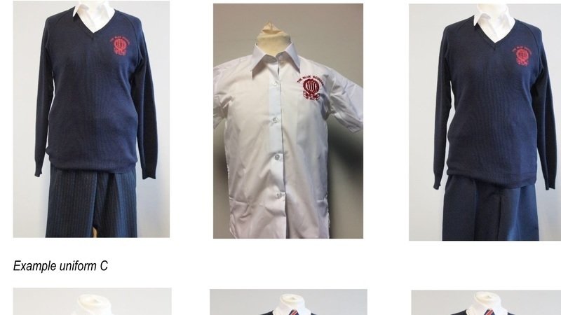 REMOVE PIN STRIPED TROUSERS/SKIRTS FROM THE BLUE SCHOOL WELLS UNIFORM OPTIONS.