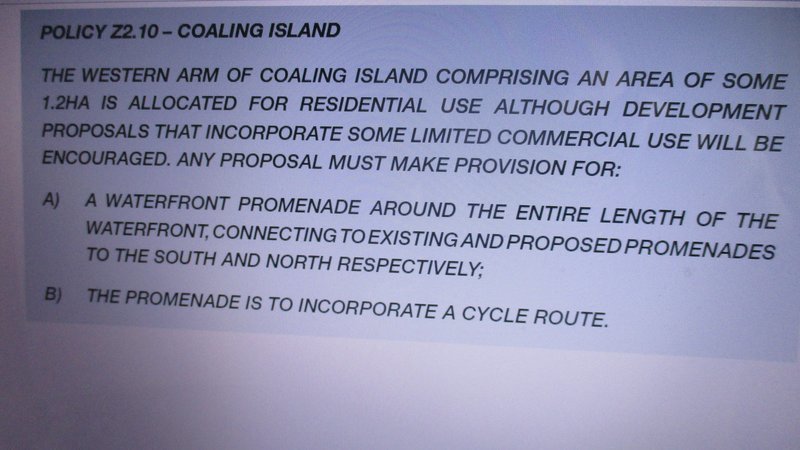 Her Majesty's Government of Gibraltar, please note, that the Proposed Coaling Island Land Reclamation is contrary to your own Gibraltar Development Plan Policy Z2.10 - COALING ISLAND, which only provides for the development of THE EXISTING 1.2 Hectares of Coaling Island, NOT A MASSIVE additional 6 Hectares of Land Reclamation.