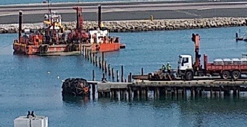 The photograph shows the 'critical stage' the construction site at Ocean Village has got to, with continuous pile driving affecting nearby local residents with noise and air pollution.