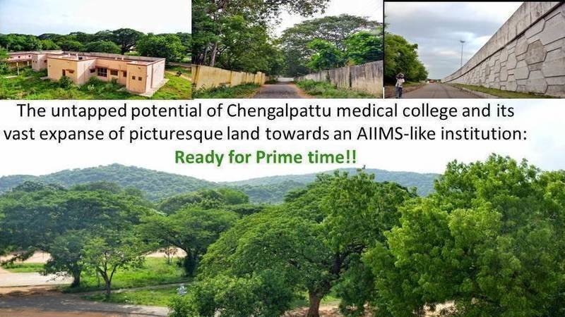Chengalpattu Medical College is probably the only medical institution in Tamil nadu, so close to the state capital Chennai, yet harbors abundant but untapped vast expanses of land. Beautifully nestled amidst a scenic backdrop of lush green trees and hillocks, it is also readily accessible by the national highway NH-45. Although steady progress has been made to the continued development and upkeep of the college since its inception, the potential scope of its expandability is highly underutilized. This could undoubtedly serve as the cradle for a combined central and state government-funded project as ambitious as an AIIMS-like institution.