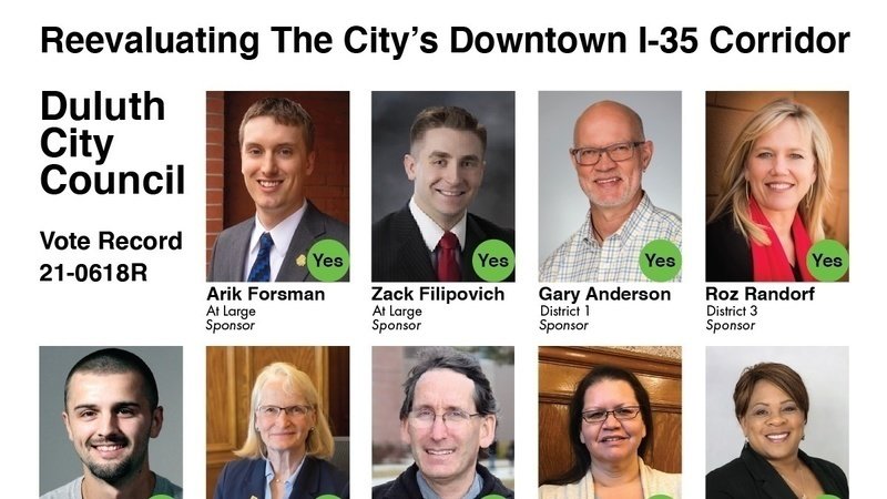 On August 16th, a vote was called on the Duluth City Council Resolution 21-0618, in support of reevaluating the city’s downtown I-35 corridor. It passed unanimously.