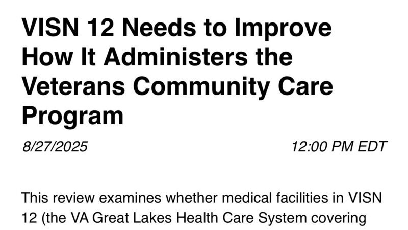 click here to review full report: https://www.vaoig.gov/reports/review/visn-12-needs-improve-how-it-administers-veterans-community-care-program