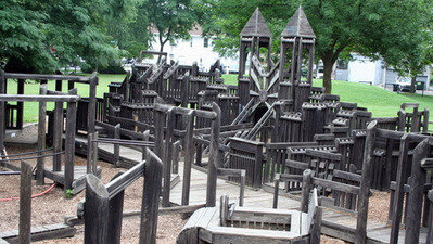 Penny Park is “one of the most used parks in Evanston.” The unique wooden playground offers: