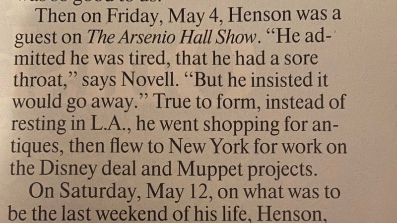 I found proof that I’m reading an article of Jim Henson. After he made his appearance on Arsenio Hall with Kevin Clash, he began to have his illness �. He admitted he had a sore throat and felt tired. Instead of resting in Los Angeles, he went shopping for antiques and flew to New York for work on the Disney deal and Muppet projects. That could prove the Disney deal made him ill �. And of course he went he went to North Carolina with Cheryl in 1990, to visit his dad, as Jim still had his illness. I also edited this petition that Disney doesn’t really know what to do with The Muppets with coming up with ideas. Unlike Jim Henson and Brian who always came up with ideas onto the next and the next chapters such as The Muppet Movie and it’s sequels the Great Muppet Caper and The Muppets Take Manhattan. As well as TV shows The Jim Henson Hour and Muppets Tonight.