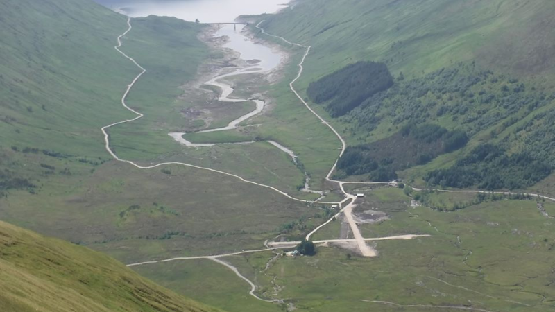The picture above is of the Glen Quoich schemes several years after completion. New roads, intakes and pipeline scars.