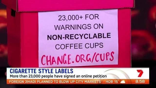 I was able to bring the idea of cigarette-style coffee cup warnings to thousands of Australians who watch Sunrise (probably while having their morning coffee!).