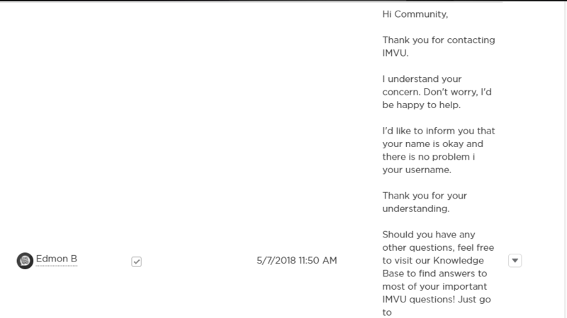 IMVU Staff are obviously very confused at this point. Now we have representatives saying the name is allowed, and some saying the name is not allowed.