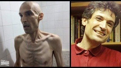 According to the professional opinion of one of his colleagues in Iran: His photos reveal severe Rhabdomyolysis that may cause permanent damage to the heart and kidneys and can lead to his death. During a prolonged hunger strike, Rhabdomyolysis is caused by consuming skeletal muscles to maintain metabolism.