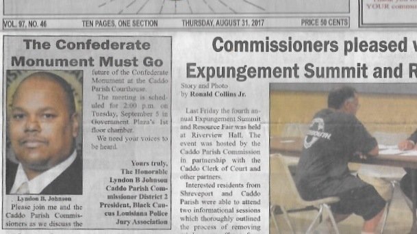 Caddo Parish Commission meets 2:00 Tues. Sept. 5th at Gov't. Plaza on Travis St. Shreveport in main 1st floor chamber. An Anti-Monument commission member published an article on the front page of a local newspaper this week requesting his readers come because "We need your voices to be heard". Supporters of the monument - We must be there as well.