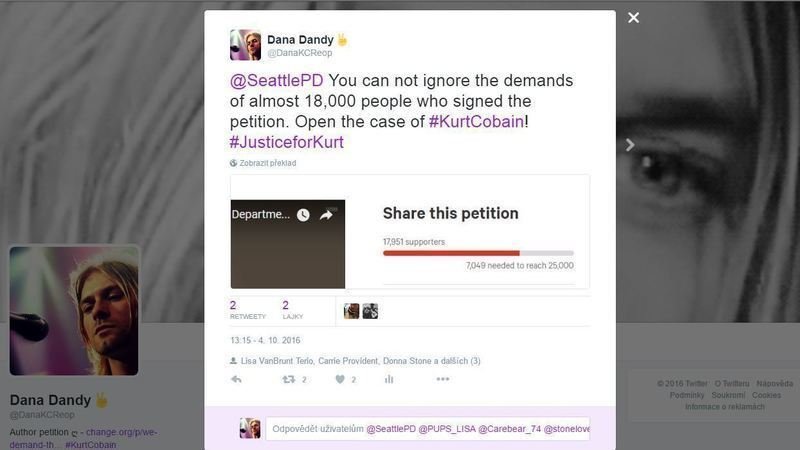 Petition updateThe official Petition Seattle PD Reopen Kurt Cobain's caseFriends, supporters, we are close to 18,000 signatures!