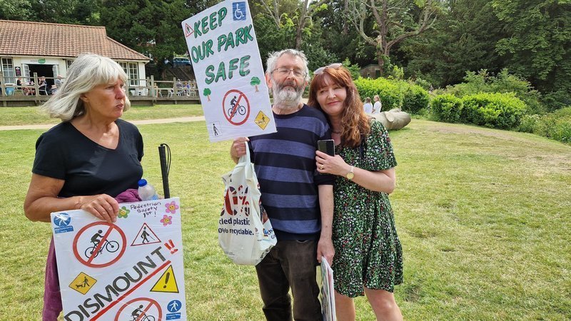 The lovely ladies here are both visually impaired and already have a tough time walking through our park, encountering verbal abuse from cyclists on a regular basis. These cyclists are all, of course, currently riding illegally through our park and they blame these ladies for being in the way.
