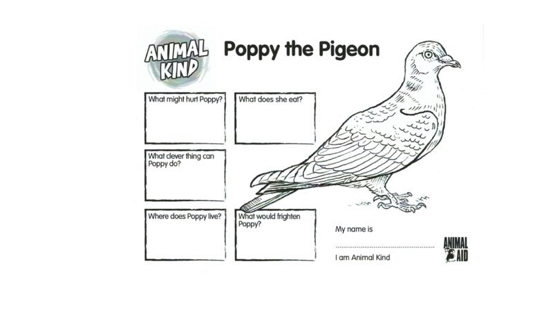 They send speakers to schools to teach children about being kind to all animals - including pigeons. Their speakers use visual aids in the form of knitted pigeons to promote kindness. The worksheet above, which features Poppy the Pigeon, is used during the talks to schools, and pigeons are included on some of their other material.  See the link below :