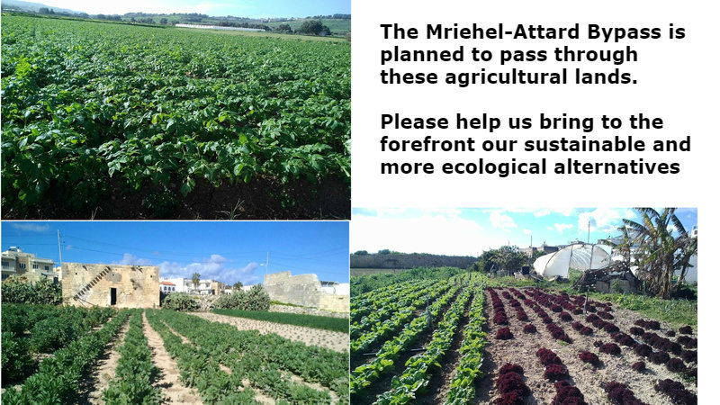 As you are aware a fully-fledged bypass is being planned by the Government. This project will affect various arable lands in Attard and loss of virgin land outside the development zone apart from the fact that it will adversely affect the residents’ quality of life since the particular area in question will from a peaceful green area be abruptly transformed into a busy arterial road exposing residents to incessant noise and traffic pollution.