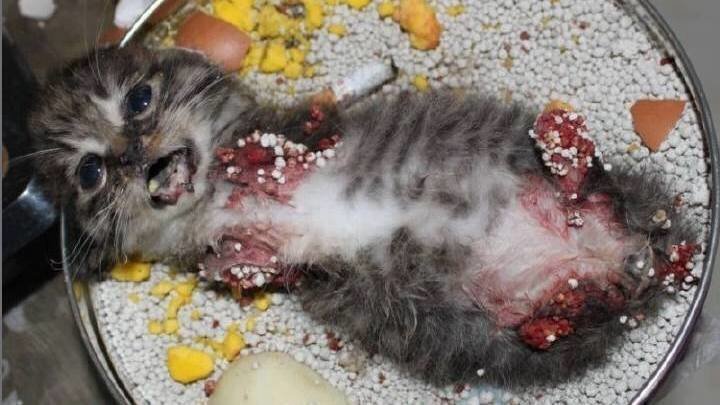 Her tail and her paws have been chopped off - now she is fried alive right at the guests' table - her screams are heard all over the restaurant - the guests are laughing - the "delicacy" is called "hopping meat"!