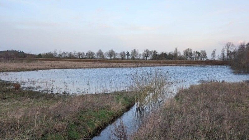 The aquifer or underground river that rises at Galley Hill and flows just beneath the ground surface of Wicklesham Quarry has risen, leaving large areas of the quarry under water. This event occurs at least twice in most years, in winter and spring, and results in floods, standing water and waterlogged ground for weeks or months each time it happens. These conditions were photographed just before Christmas. Both ‘pond areas’ are full of water, and a further ‘undocumented pond’ has flooded across the entrance ramp and a wide area beyond it. The southern side of the quarry (above) is a wide shallow lake almost half the length of the quarry. This is the second time in 2024 that the aquifer has risen and inundated large parts of Wicklesham Quarry, confirming the evidence of the flood map submitted to Oxfordshire County Council by the Vale District Council in December 2023. The claims made by the applicant that the ponds have been 'dry' for several years and any standing water is merely ‘impeded drainage’ look as ridiculous as many other statements in their application.