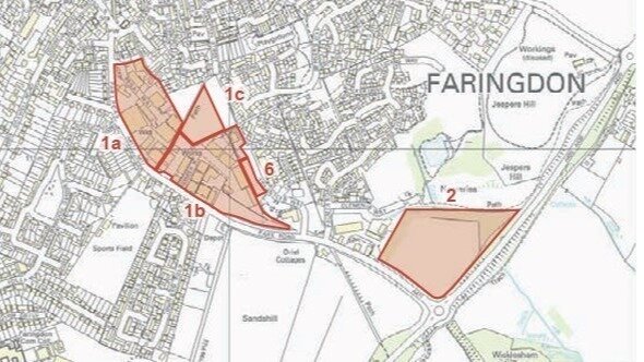 Above: Some of Faringdon's already-allocated strategic 'employment land' in 2014 from the map in Faringdon Neighbourhood Plan, including the 4&20 site (corner of Park Road & the A420), which remained undeveloped from 2006-2015.