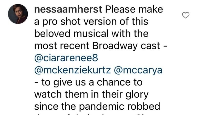 I took this opportunity to post on the official Frozen Broadway Instagram page requesting a pro shot of this musical with Ciara, McKenzie, and Ryan reprising their roles and encouraging people to sign the petition.