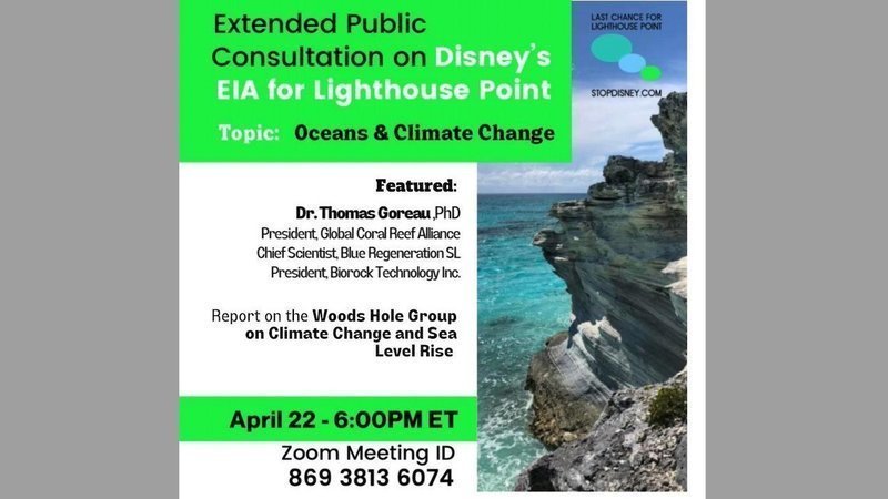 The Stop Disney - Last Chance for Lighthouse Point Campaign partners will host another extended public consultation meeting on Earth Day, April 22, at 6:00 PM EDT (Zoom link, Meeting ID: 869 3813 6074) to discuss Disney’s Environmental Impact Assessment (EIA) and its consideration of oceans and climate change. At our last meeting on April 15th experts and members of the public identified serious deficiencies in Disney’s EIA. Disney needs a comprehensive and science-based EIA to make a sound decision about the future of Lighthouse Point. We hope you will join us to continue this important conversation!