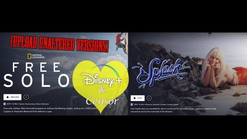 Uncensor Free Solo (PG-13) and Splash (PG) on Disney Plus!
