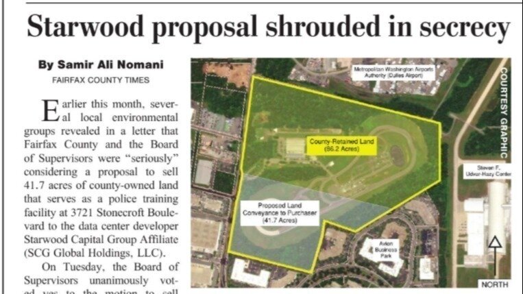 FAIRFAX COUNTY BOARD OF SUPERVISORS APPROVES CONTROVERSIAL, DISCOUNTED LAND SALE TO DATA CENTER DEVELOPER STARWOOD CAPITAL GROUP AMIDST PUBLIC OUTCRY