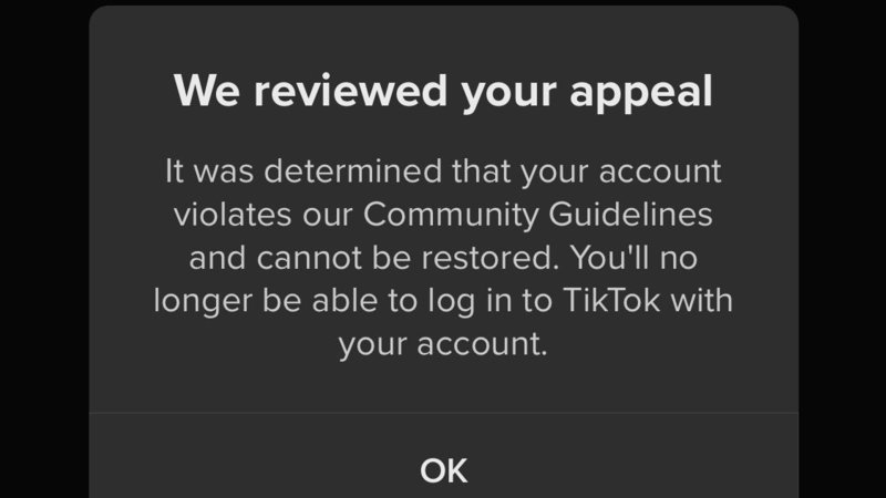 I appealed the decision to delete my account, but received the notification that they have reviewed my appeal and “it was determined that my account violates community guidelines and cannot be restored.” I am eagerly waiting TikTok’s email for a full explanation.
