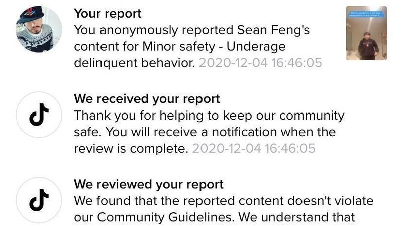 Lastly, I reported the account AND video twice. Both times, TikTok responded and said that the video does NOT violate any of their guidelines. I’m disgusted and appalled that TikTok thinks it's ok for people to joke about little kids having sex. Sex trafficking is a huge problem in the world and TikTok should be ashamed of themselves for allowing this kind of behavior. There are women that are literally being banned for having cleavage while NOT doing anything sexual. Why is it ok for nearly naked women to bounce around with one or two pieces of clothing on but it's not ok for a woman with cleavage? I’m really disappointed with TikTok.