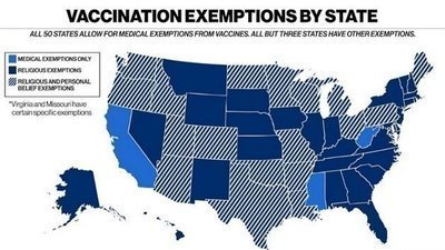 These outbreaks occur from pockets of people who are not vaccinated becoming infected and causing the disease to spread rapidly. Due to the ability to get non-medical exemptions, these pockets of people are able to avoid getting vaccinations creating risk to others.