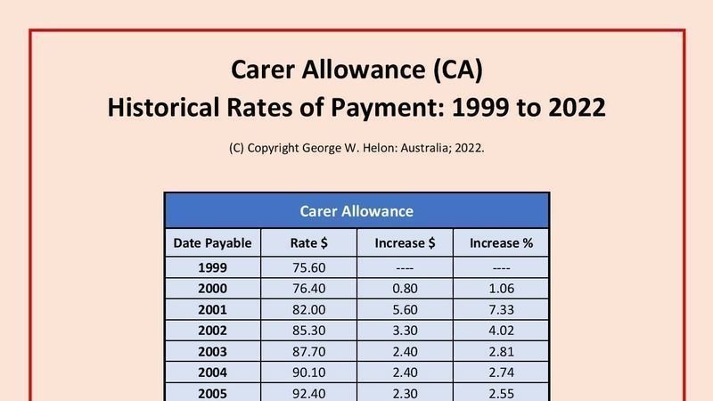 Did you know that Carer's Allowance began in 1999; then it was paid at the rate of only $75.60 a fortnight, or $1965.60 a year!